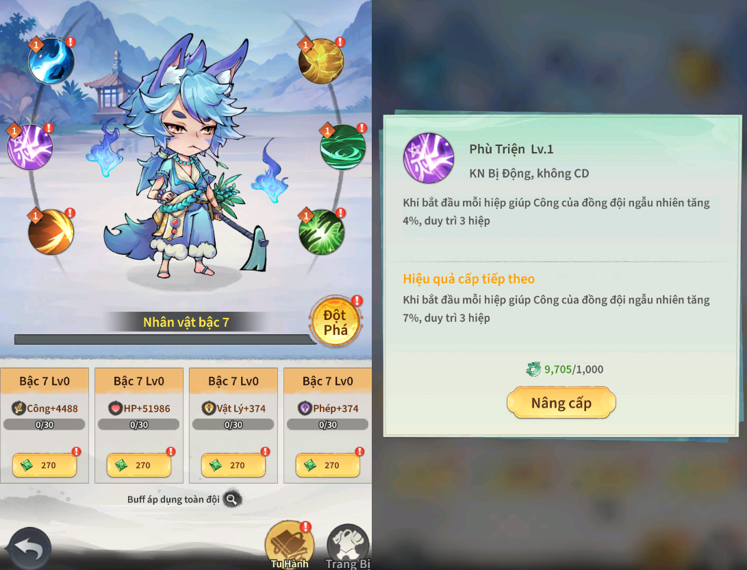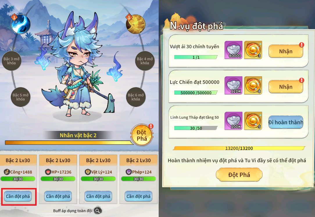 💡 Gợi ý cho tân thủ: Đá Huyết Tinh có thể kiếm từ Thưởng Auto, Phó Bản Cốt Truyện; tiên hữu nên dùng để cường hóa đều trang bị, mở chỉ số cộng thêm và tăng lực chiến ổn định.