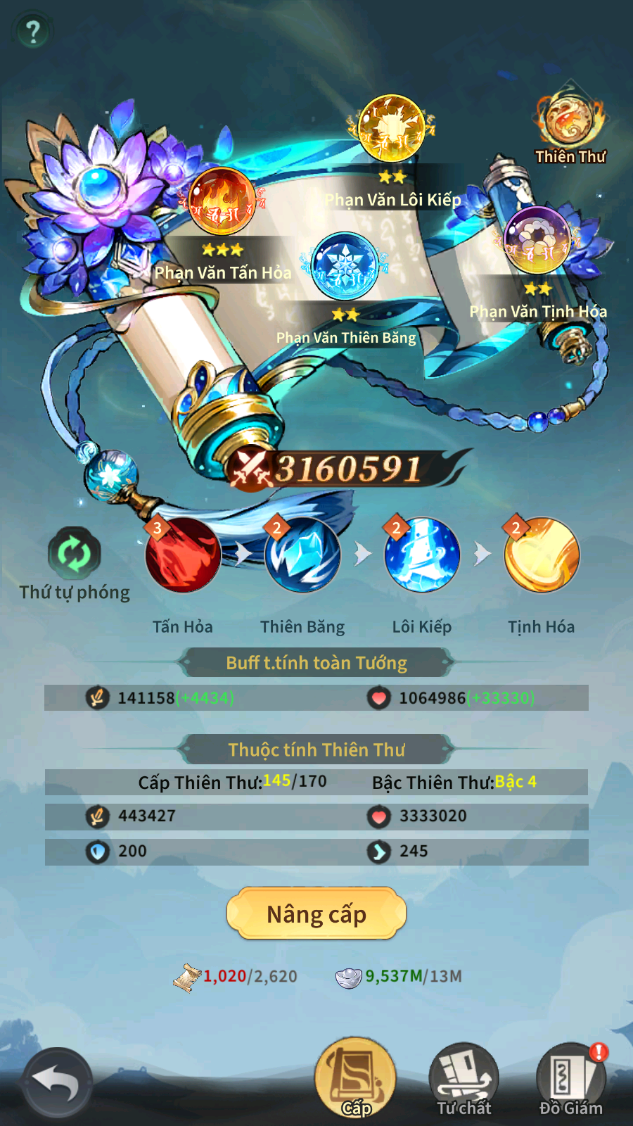 - Cấp sao Phạn Văn càng cao, buff Đồ Giám Thiên Thư càng lớn