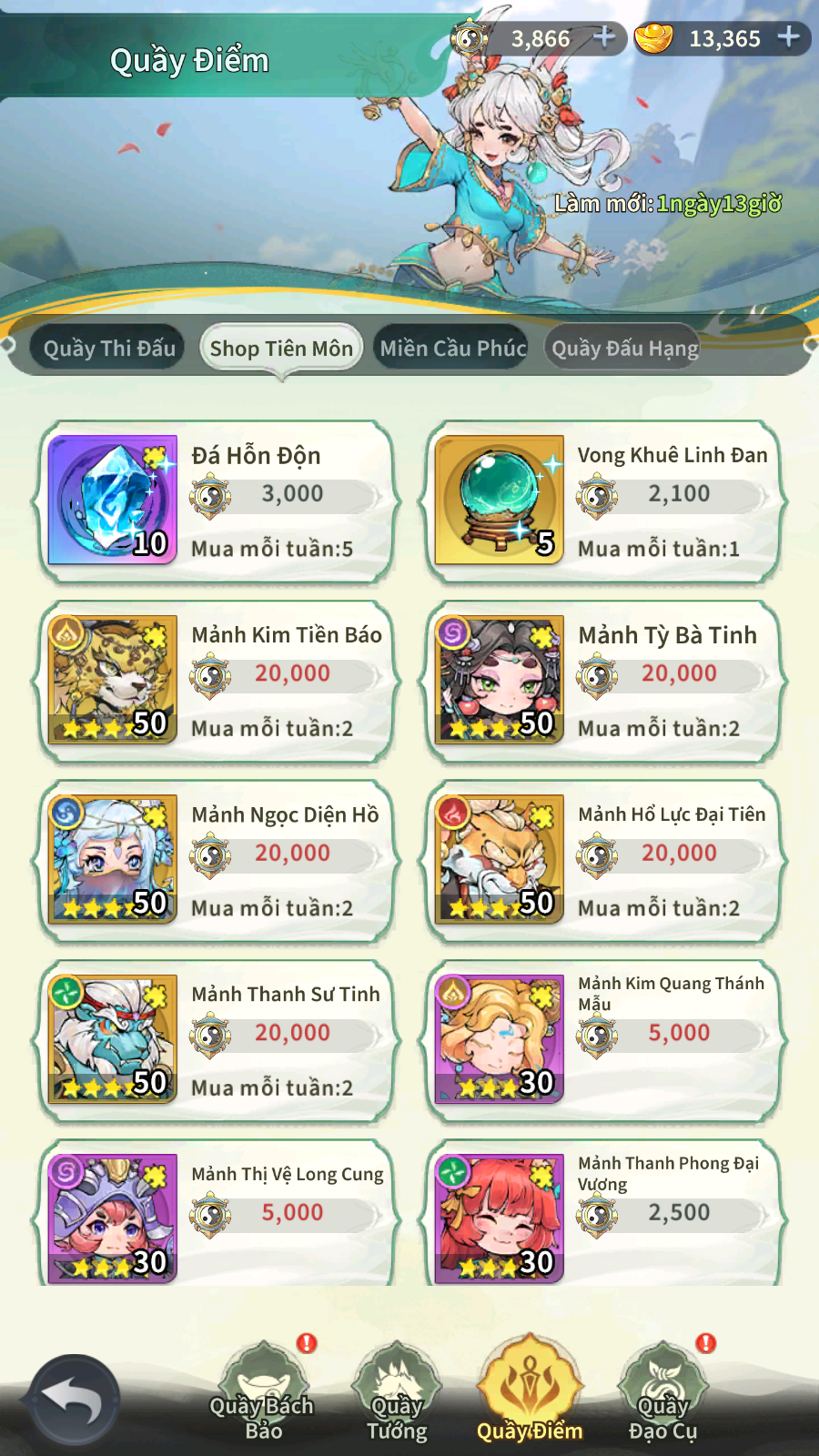 - Mỗi Tiên Môn có Bảo Khố Tiên Môn khác nhau.